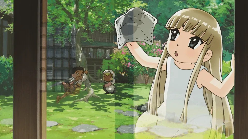 Okko está dispuesta a ayudar a la abuela; gracias a sus amigos, amigos que solo pueden ser vistos por ella, amigos que no se encuentran en el plano terrenal. A diferencia de Momo, Okko se esfuerza por vivir cada día, sin dejarse atormentar por su vulnerabilidad humana, por sus sentires que anhelan aquello que ya no está.